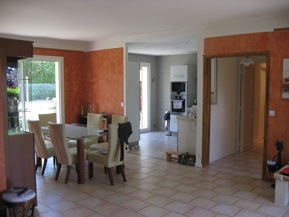 Premier travaux: salle de bains, cuisine. Encastrement des fluides dans les pièces concernées par le projet et le salon salle à manger.