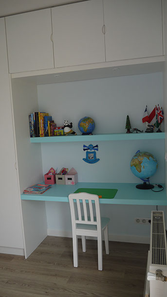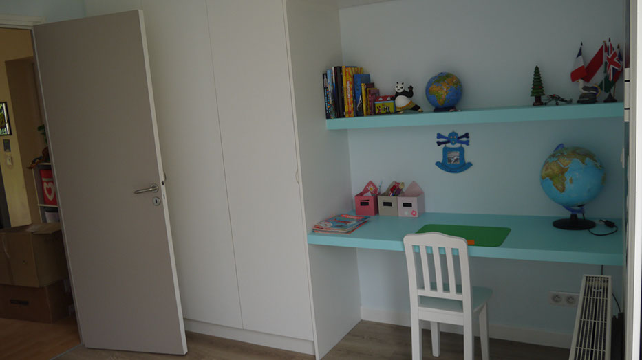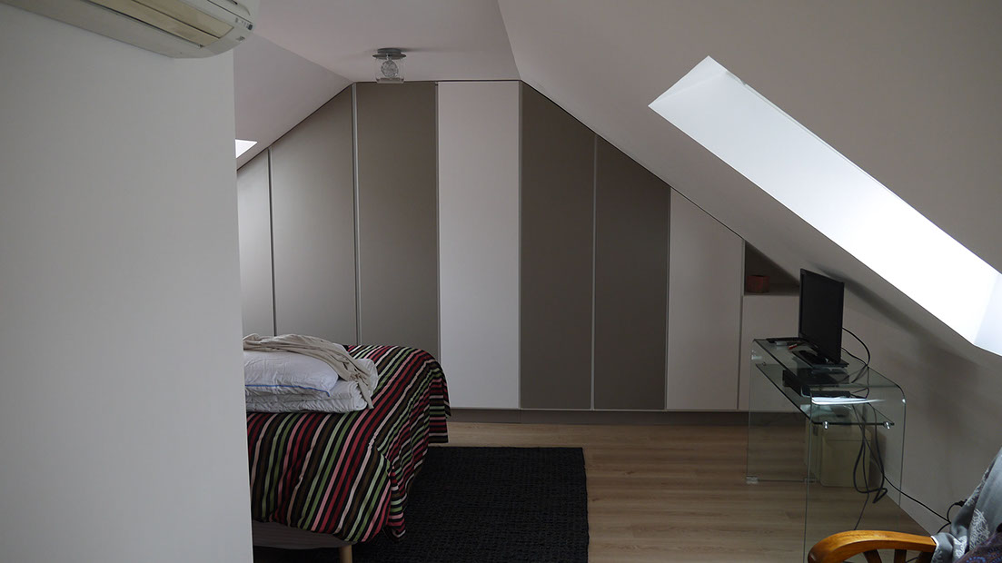 Troisième phase: aménagement intérieur chambres des filles et suite parentale avec création de rangements sur-mesure chambres et escalier