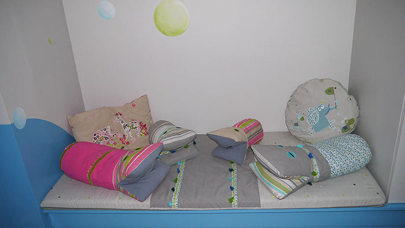 Chambre garçon détail banquette et accessoires