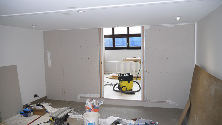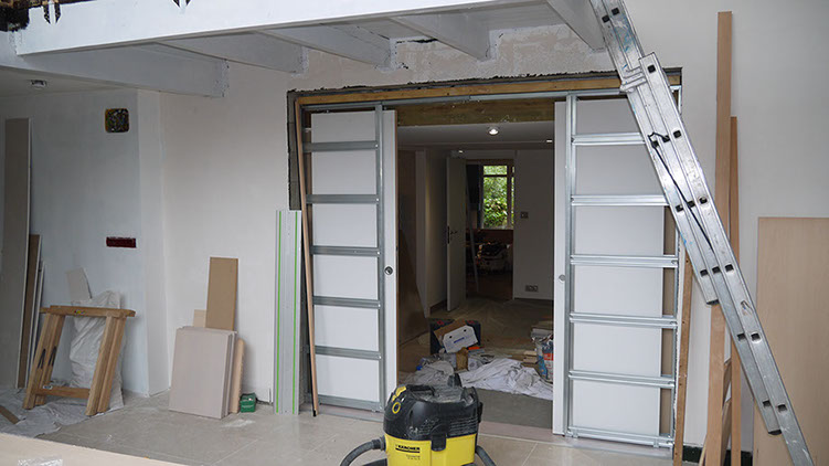 Entrée pendant travaux avant la pose de la portière