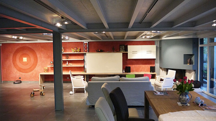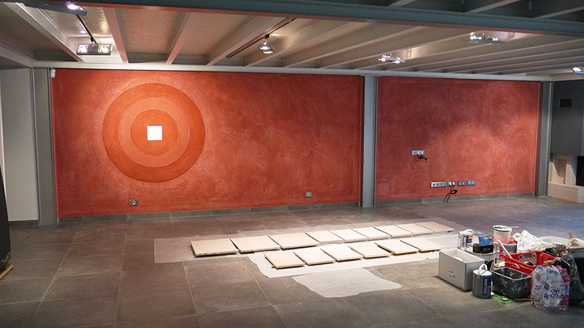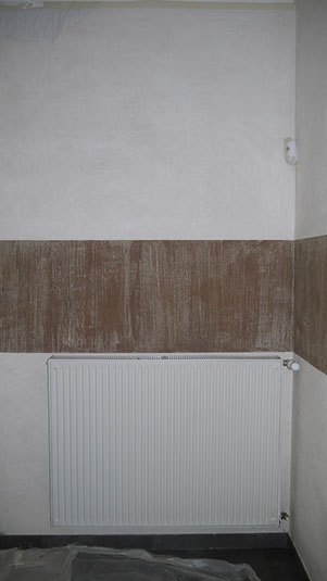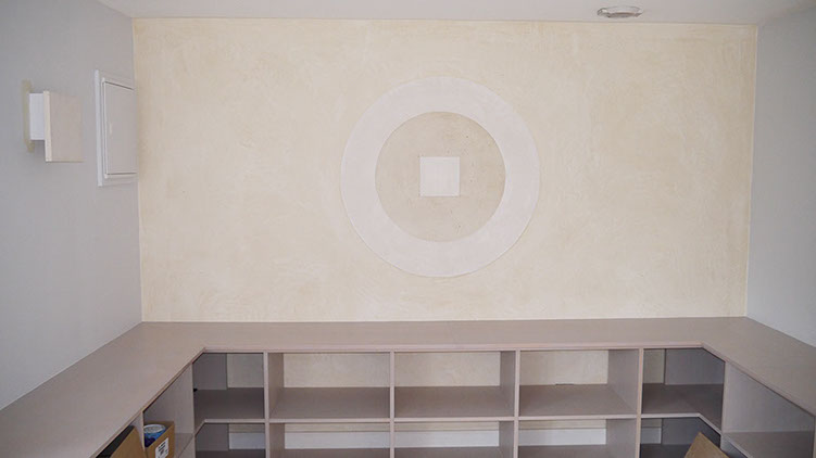 Mur salon en enduit décoratif en cours
