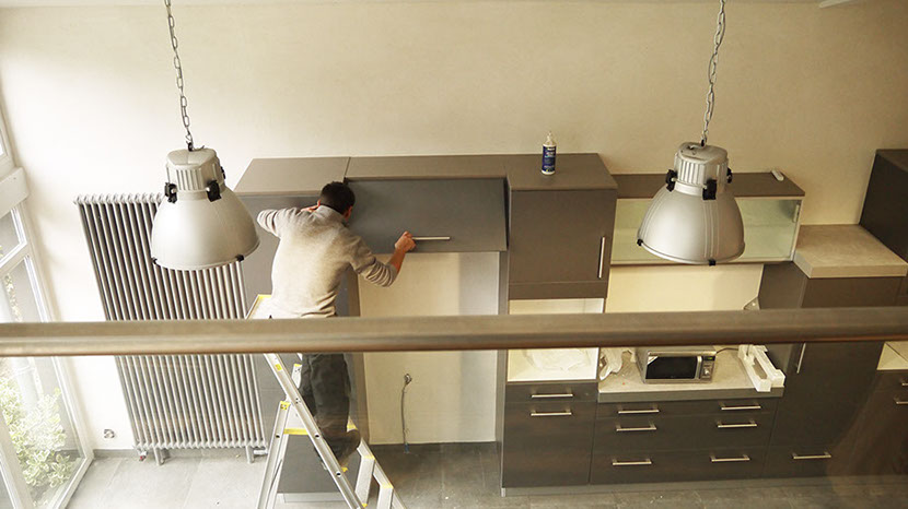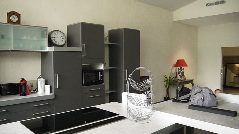 Avant travaux, meubles hauts de la cuisine sans joue du dessus