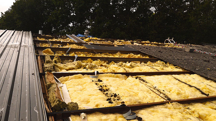 Changement de la couverture (à gauche panneaux sandwich neuf à droite toile ondulée)