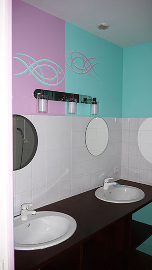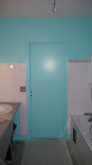 Salle de bains jumeaux pendant travaux porte garçon