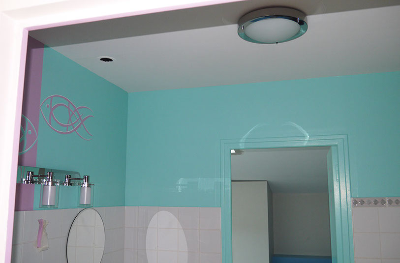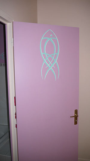 Salle de bains jumeaux, détail porte fille