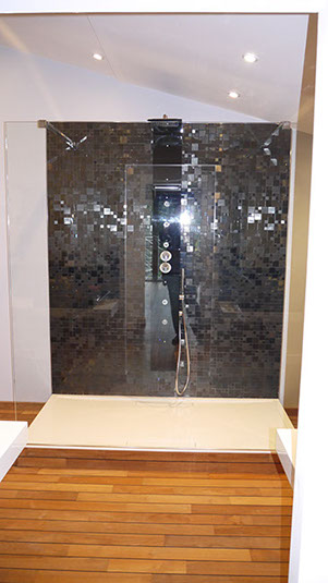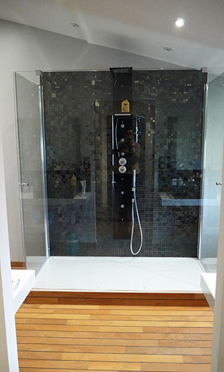 Salle d'eau avant travaux, pose de deux portes de douche