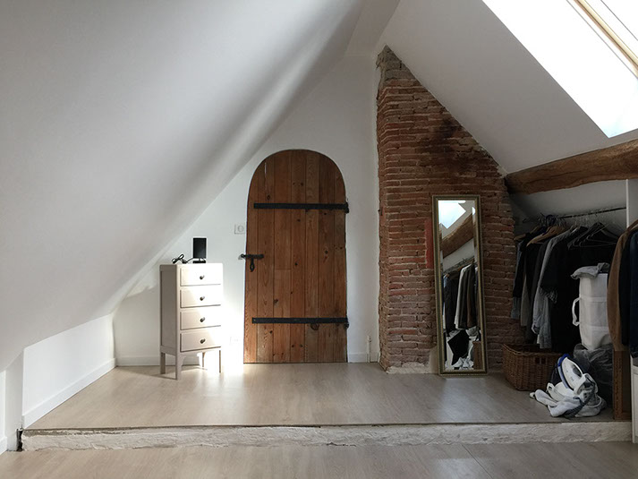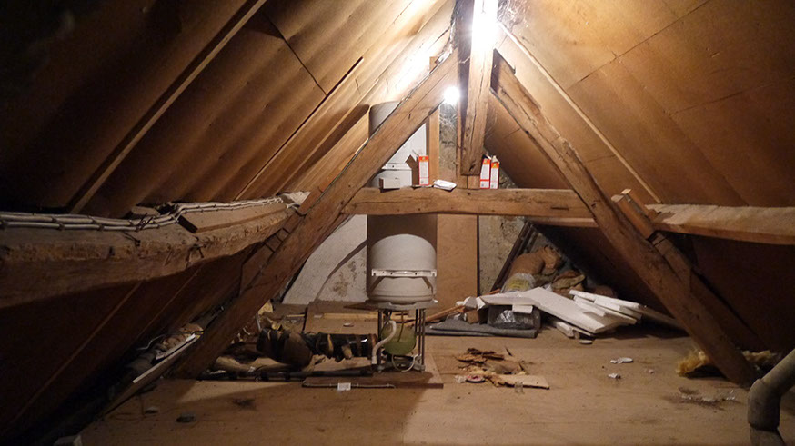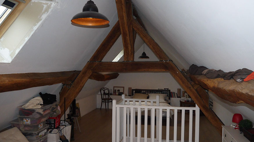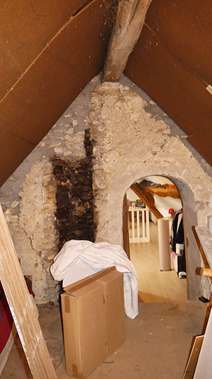 Mur porteur futur bureau avec boisseau cheminée avant travaux