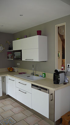 Premier travaux: salle de bains, cuisine. Encastrement des fluides dans les pièces concernées par le projet et le salon salle à manger.